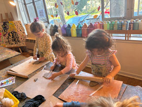 Children explore their creativity through a variety of hands-on art projects such as painting, clay work, and collaging.